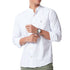 Camisa Manga Larga Regular Fit para hombre. Cuello Mao con botones con pechera completa. Bordado icónico en el frente delantero en contraste. Botones elaborados en semilla de Tagua 100% Biodegradable (la tonalidad del boton puede variar en cada camisa al ser un producto natural y artesanal)